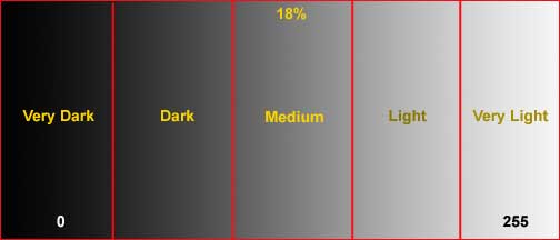 In an image recorded in 8 bit mode (we’ll ignore 12 , 14 and 16 bit modes for this tutorial) there are 256 discrete brightness levels between absolute black (0) and absolute white (255). 18% gray (the point that all exposure metering measures) has a numeric value of about 128, half way between black and white. If you think about it this is fairly logical. This means that if you are exposing for an average subject, say something like a scene with people, trees, grass etc, these subjects will be exposed at about the mid point of the camera’s dynamic range. Why is this important?