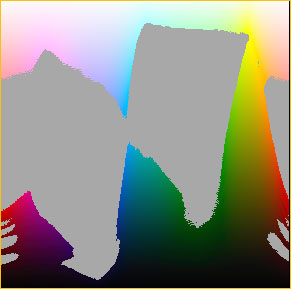 Here’s a good use for the Granger Test Chart which I wrote about recently. If you create two of them, one in the Adobe RBG space and another in the ProPhoto RGB space, you’ll see how much less ProPhoto is out of gamut. Figure 5 below illustrates this. The first image shows gamut clipping on Adobe RGB, while the one seen when you pass your mouse over it shows what happens in the ProPhoto space.