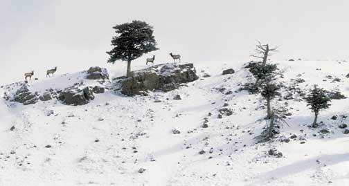Elk on Cliff‚ Yellowstone, Feb. 2002