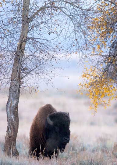 We arrived well before dawn near a pasture area, just east of theMadison Junction. It was a cold but very clear morning, and because the water in the nearby river is fed by run-off from hot springs it was shrouded in fog‚ ideal for photography.