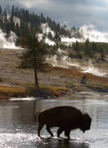 I like this photograph because it encapsulates the two separate icons of Yellowstone‚ the Buffalo and the steaming hot springs, nicely balanced in one frame.
